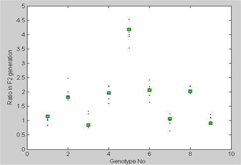 3. Let the computer produce random samples with the same size as Mendel, and make frequency plots with 90% confidence intervals.